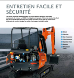Alimenté par le moteur diesel Kubota E-TVCS V1505-E4-BH-3EU, robuste et fiable, conforme à la norme Stage V, conçu pour offrir une puissance et des performances maximales tout en minimisant les émissions de gaz d’échappement, le niveau sonore et les vibrations.